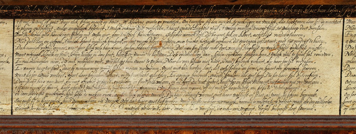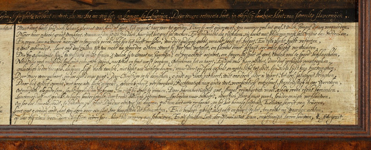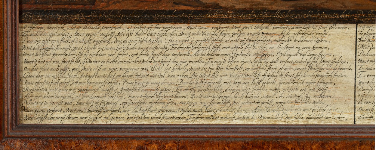 Gemonogrammeerd en gedateerd op de steen rechts: J [teken] L Inventor LVC (letters ineen en boven elkaar) Pinxit 1663. Onder de tekst in de derde kolom eveneens het monogram LVC met de toevoeging: schripzit. De voorstelling is gedeeltelijk gebaseerd op prenten door Cornelis Cort naar ontwerp van Maarten van Heemskerck uit 1564, De kringloop van ...