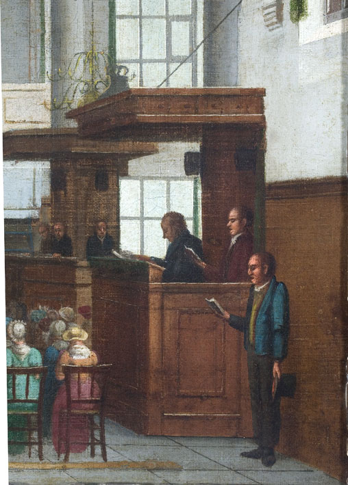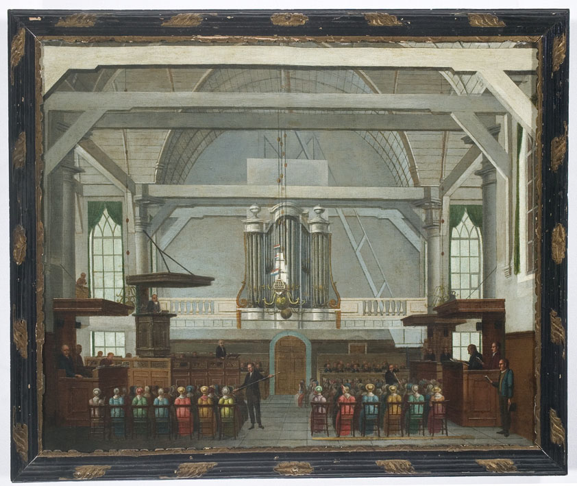 Interieur van de Ned. Herv. kerk te Koog aan de Zaan tijdens de eredienst