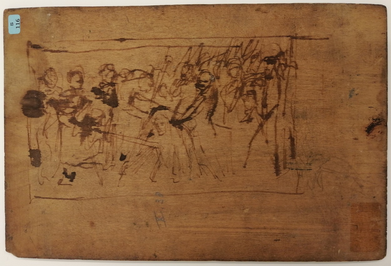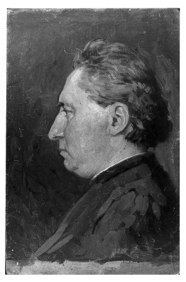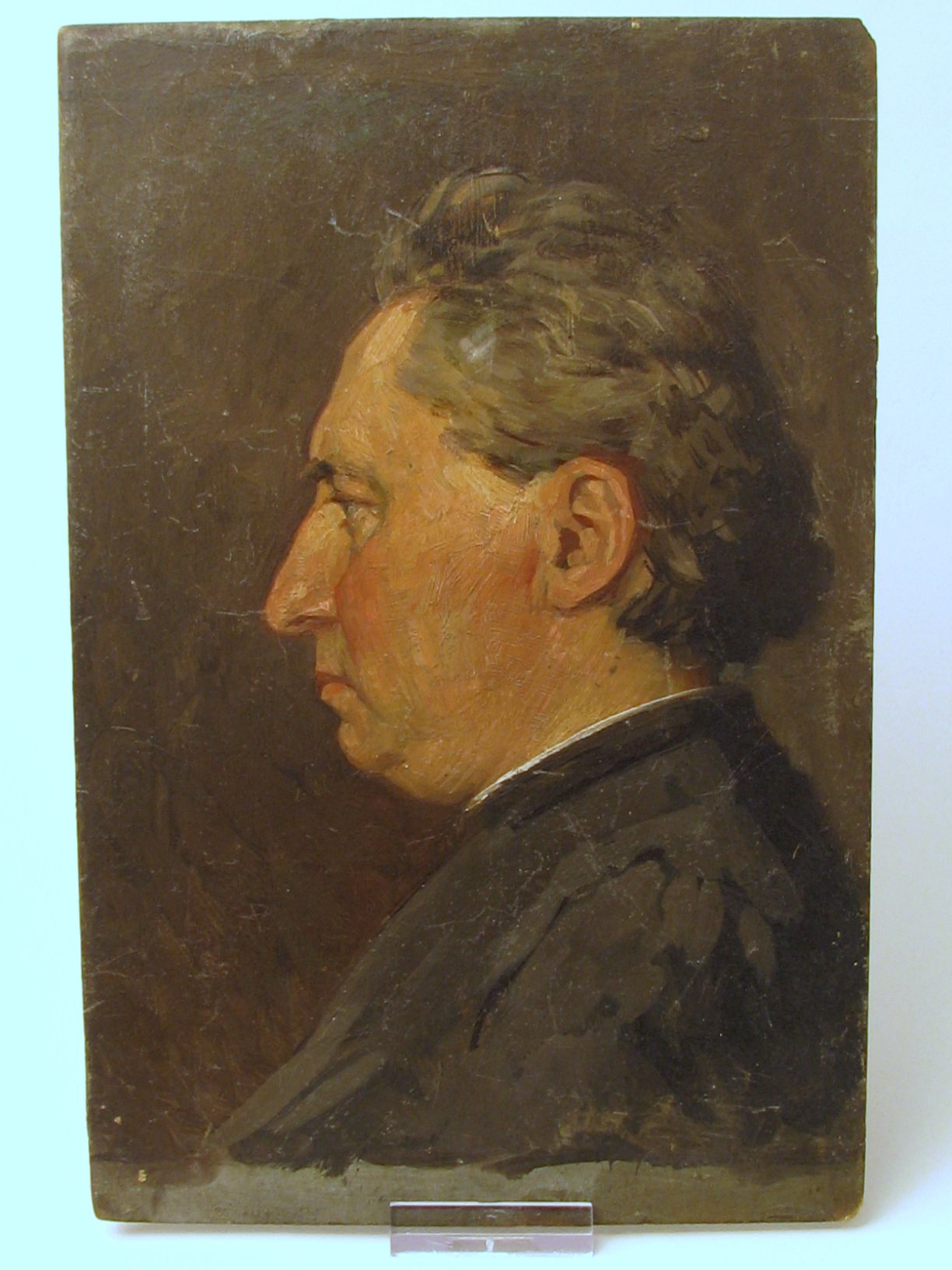 Het portret zou volgens overlevering van een pastoor zijn, een kennis van de schilder. Op de achterzijde een pentekening met de Val van Christus onder het kruis, ontwerp voor een kruiswegstatie.