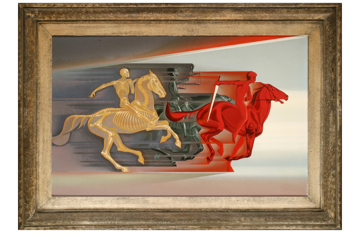 De ruiters symboliseren oorlog, hongersnood en dood.