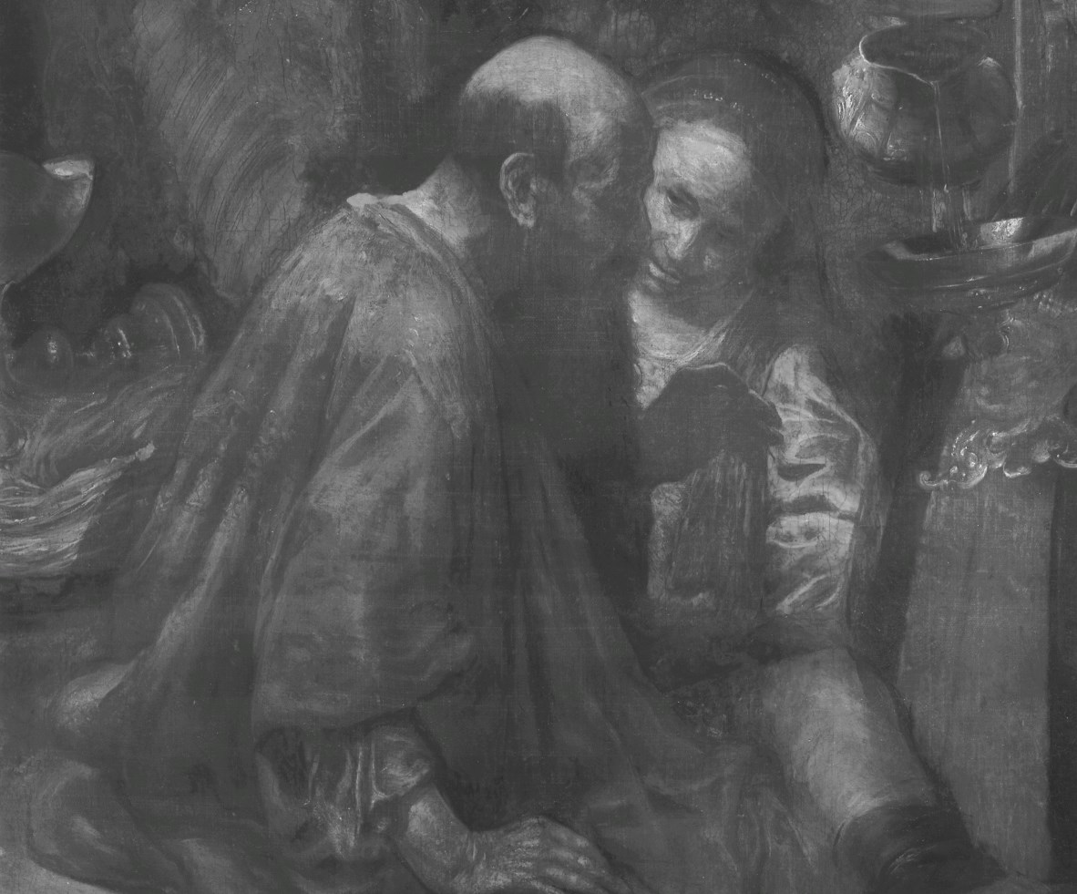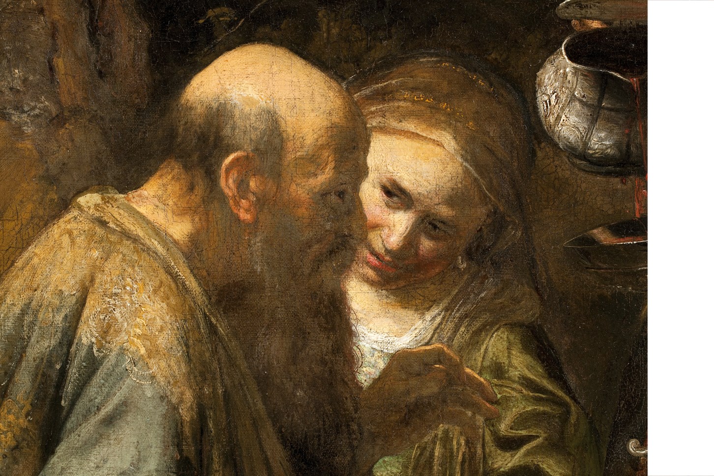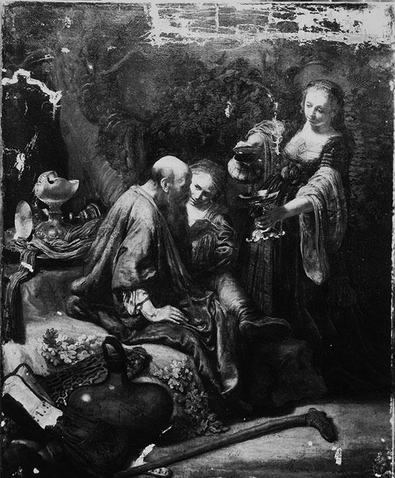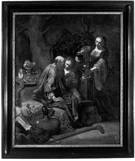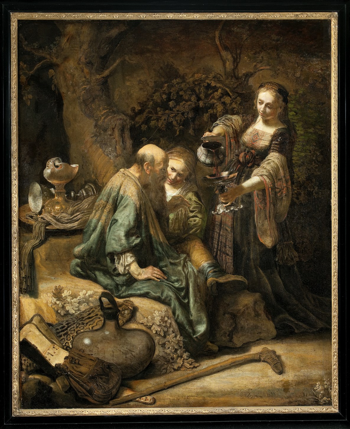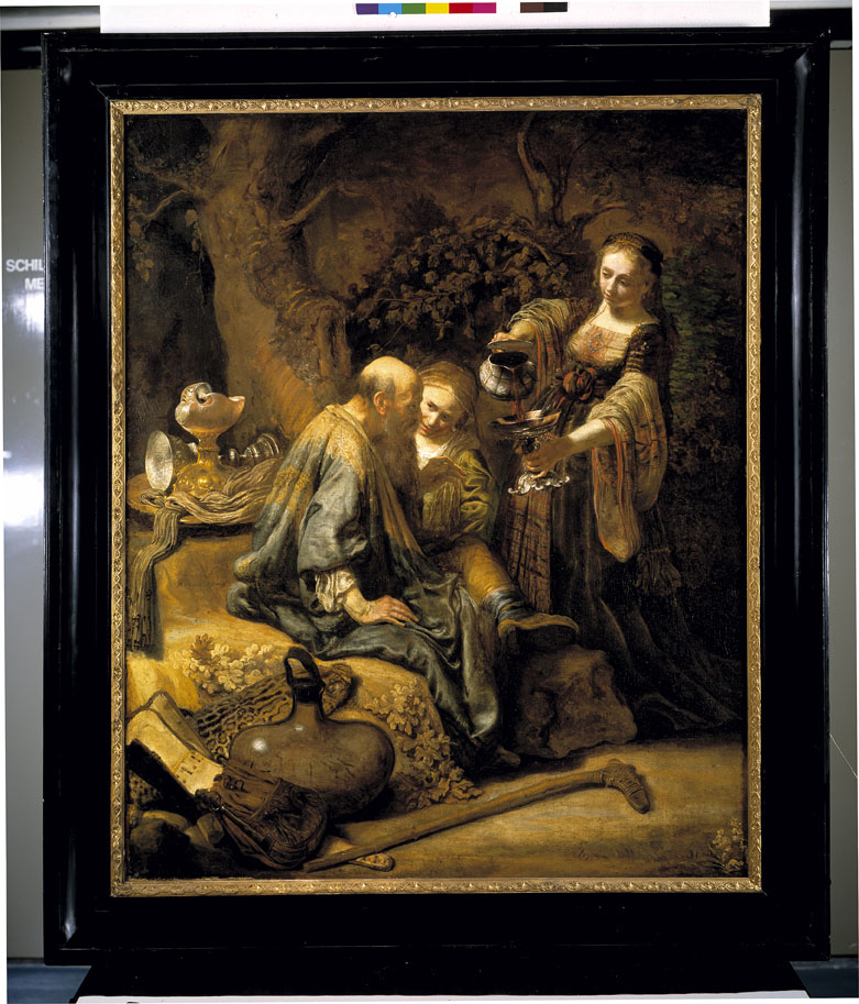 Tegen een achtergrond van een oude boom en een spelonk zijn Lot en zijn twee dochters afgebeeld. Het schilderij verbeeldt een passage uit de bijbel (Gen.19:30) waarin de dochters hun vader dronken voeren om hem daarna te verleiden met de bedoeling zwanger te raken en het menselijke geslacht voort te zetten. Lot, afgebeeld als een ...