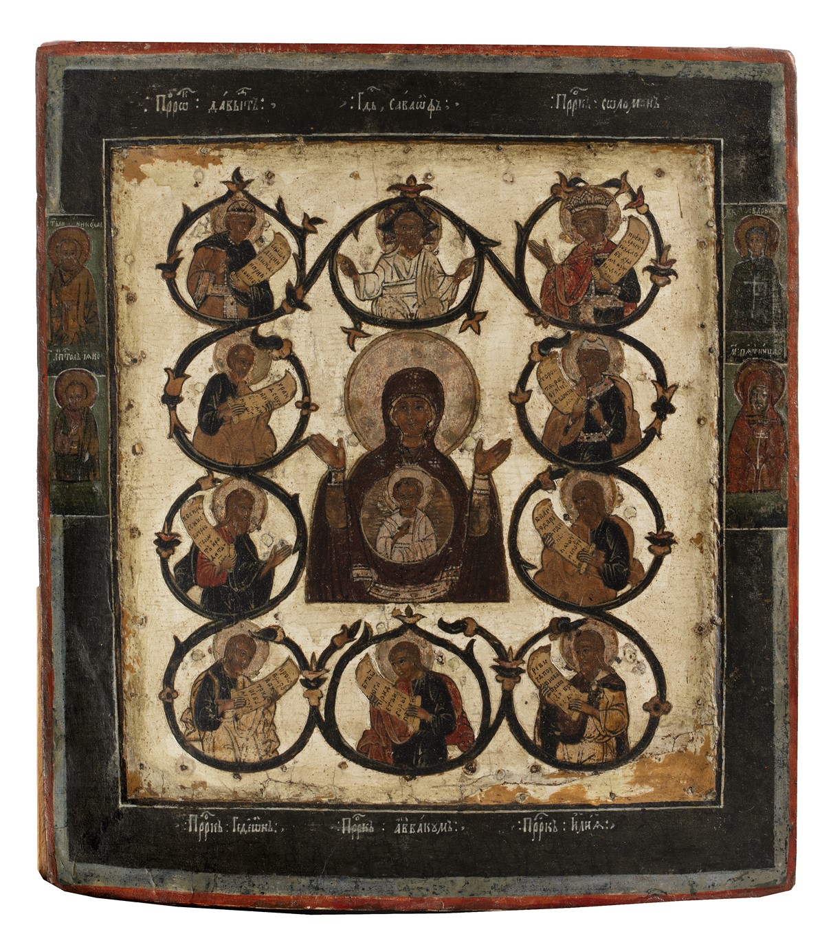 Moeder Gods 'De profeten hebben u voorzegd', met randheiligen Barbara, Paraskeva, Nicolaas en apostel Jacobus