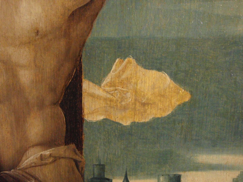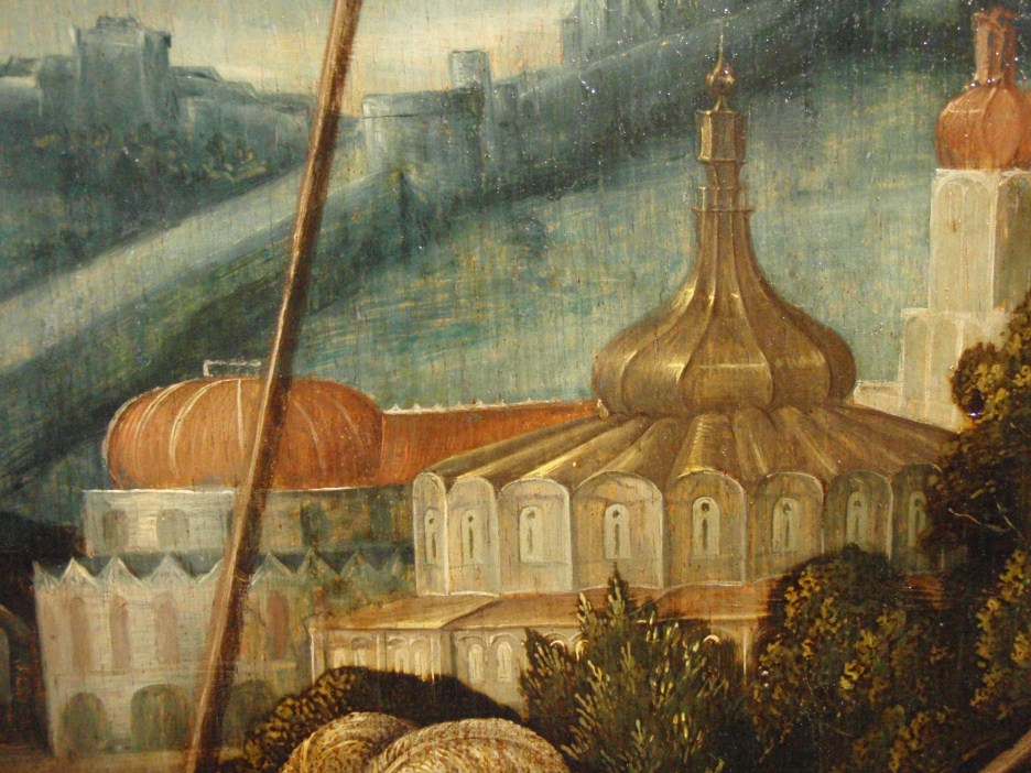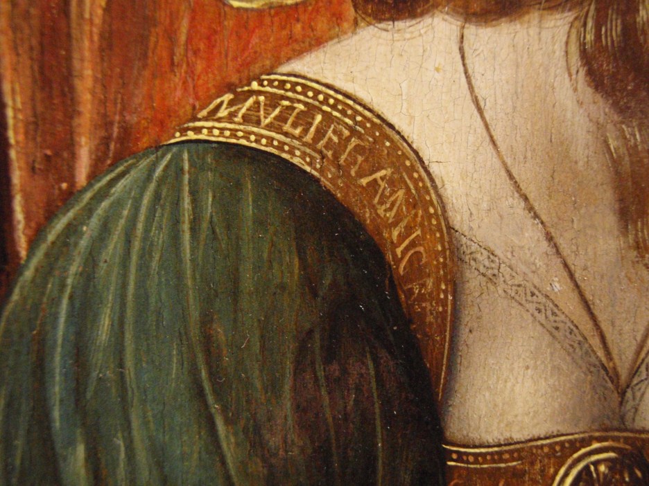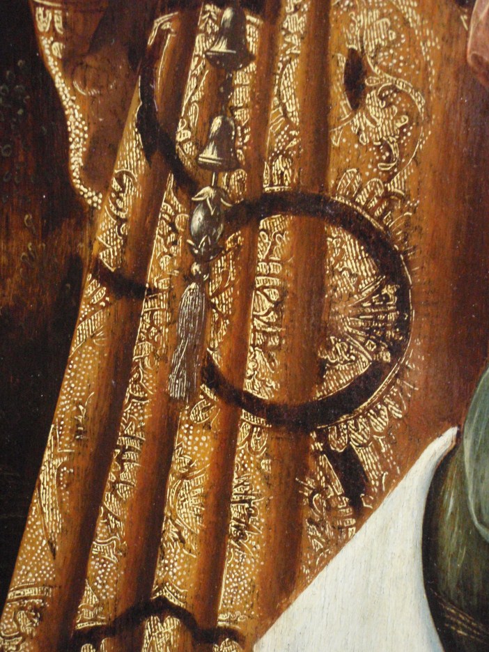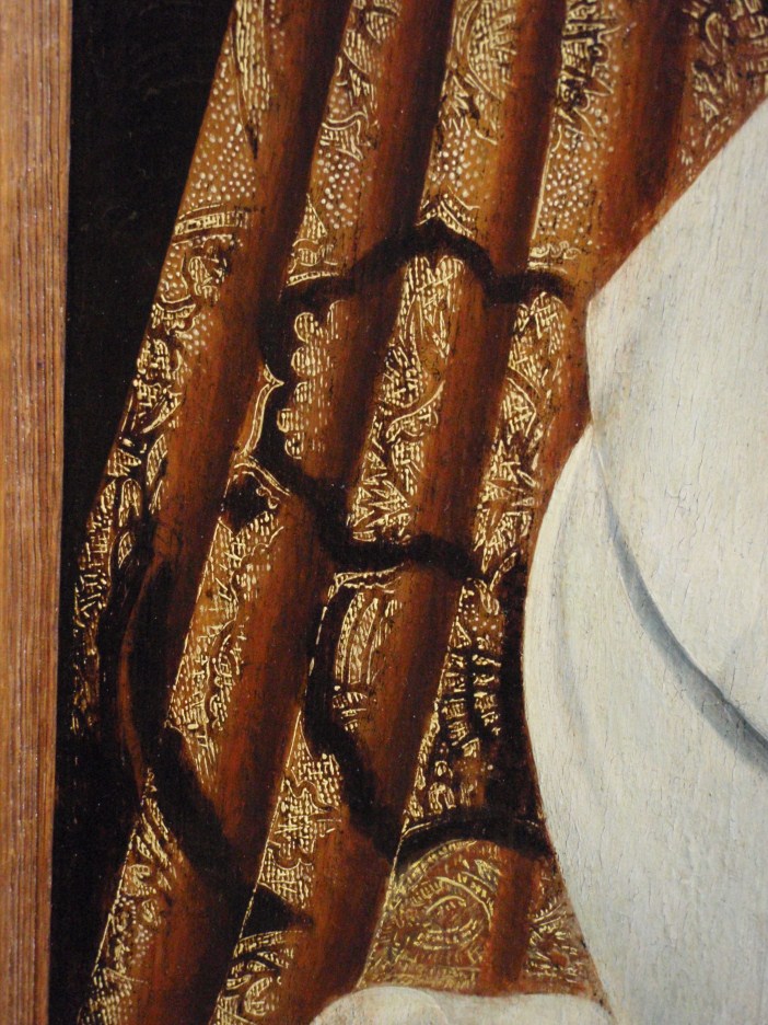 De kruisigingsscène van het middenpaneel zet zich voort op de luiken met links de goede en rechts de slechte moordenaar. Op de sierband langs de halsuitsnijding van het kleed van de vrouw, die samen met Johannes Maria ondersteunt, de inscriptie: MVLIER AD[.]IC B [...] (Vrouw ...). Het drieluik is een memorietafel van Dirk van Noordwijk ...