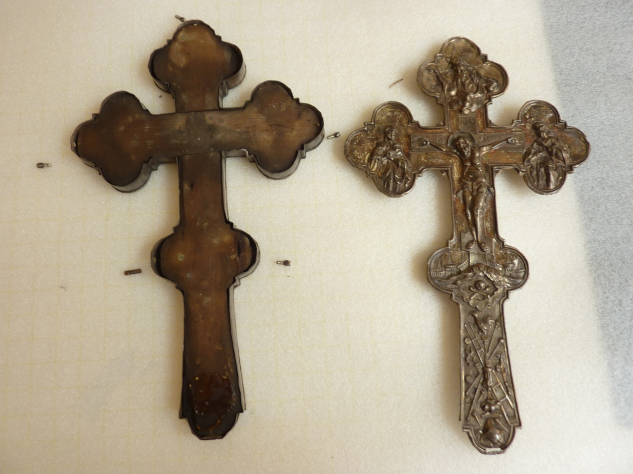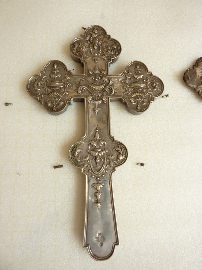 Het zilveren kruis is gemerkt met meesterkeur AW 1792 en keur Moskou Alderman O.P. (1775-1804).