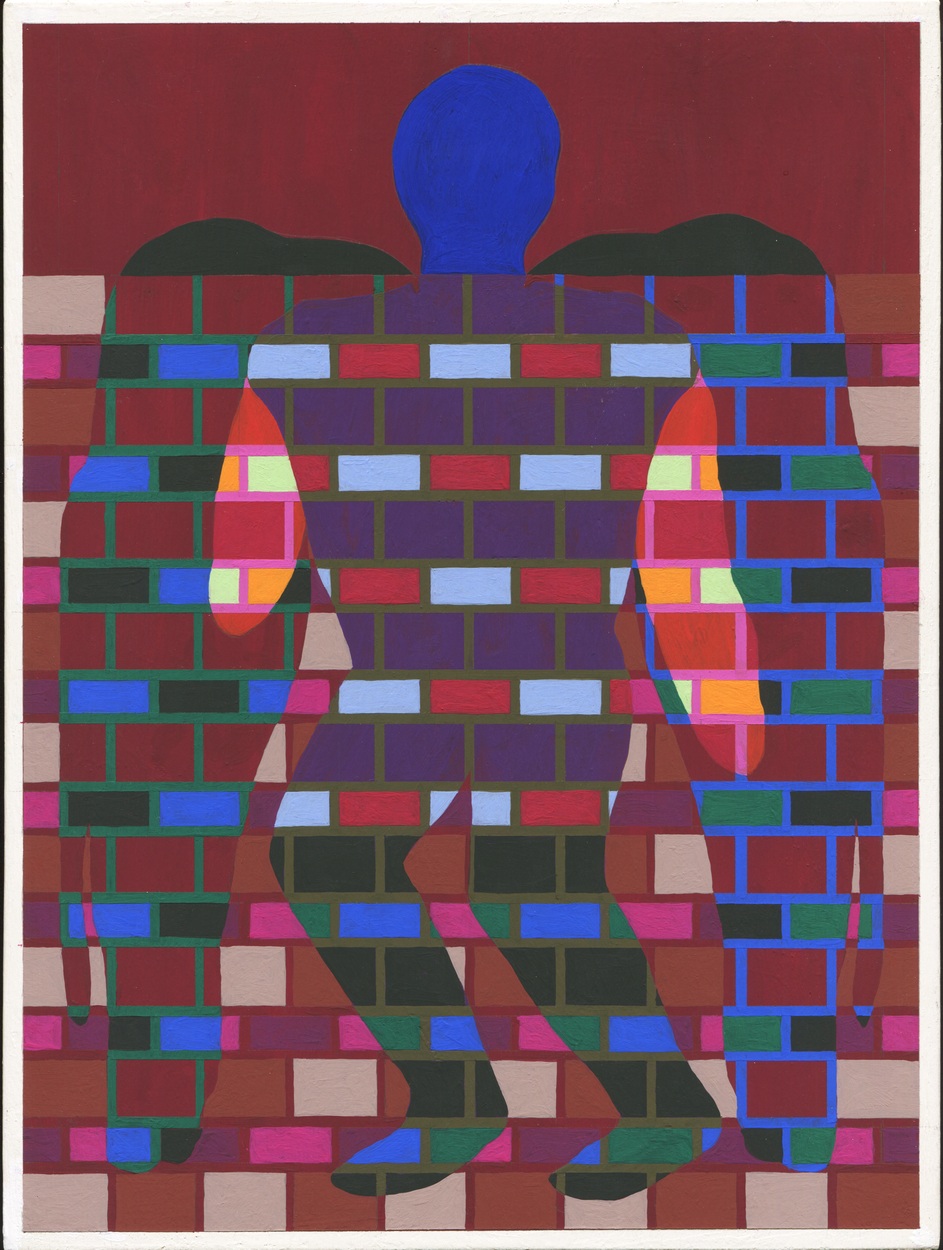 Path and Puddle: negende paneel, op gele grote deur: Odin in bed, achter de muur