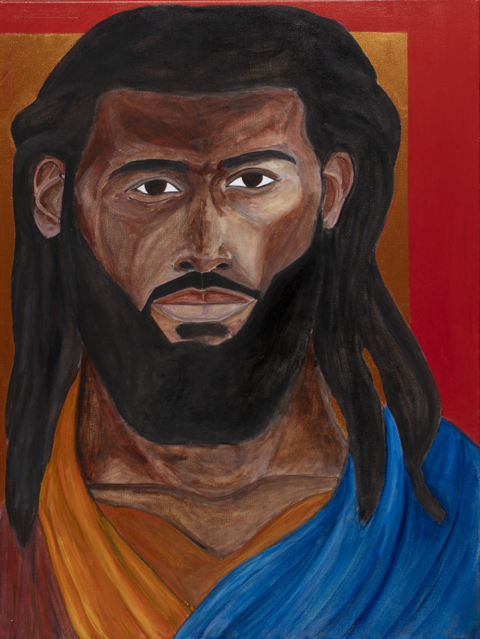 Portret van Christus. Aan achterzijde gesigneerd en gedateerd, met titel: Jesus Chirst / Kenneth Aidoo, 2025 / (handtekening Kenneth Aidoo).