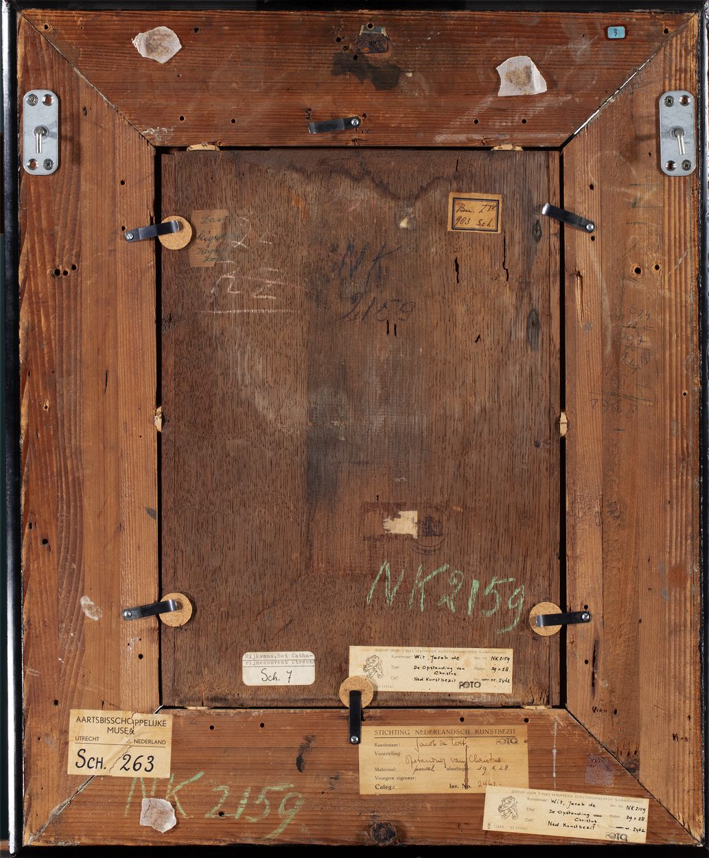Gesigneerd op de opstaande deksteen links: Wit f.; daaronder een onleesbaar jaartal. Olieverfstudie voor het gelijknamige altaarstuk dat De Wit in 1736 in opdracht van pater Théodore (de) Breilly schilderde voor de Franse Kerk in Amsterdam (huidige verblijfplaats onbekend; afb. Amsterdam 1995-1, p. 66, afb. 34).