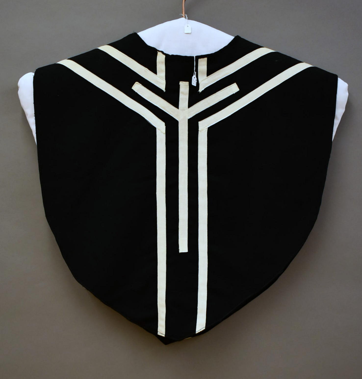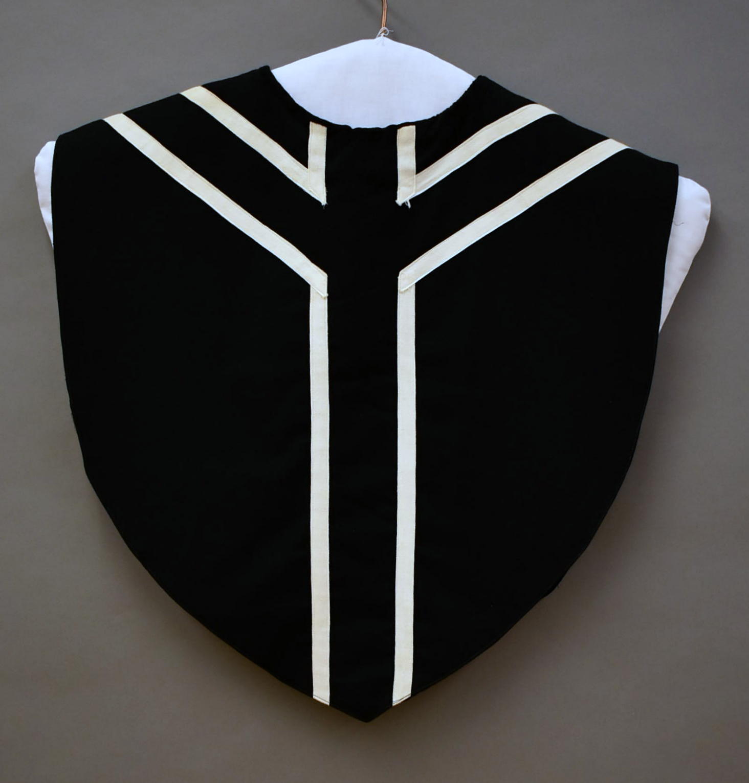Zwart kinderrouwkazuifel met gaffelkruis van wit band