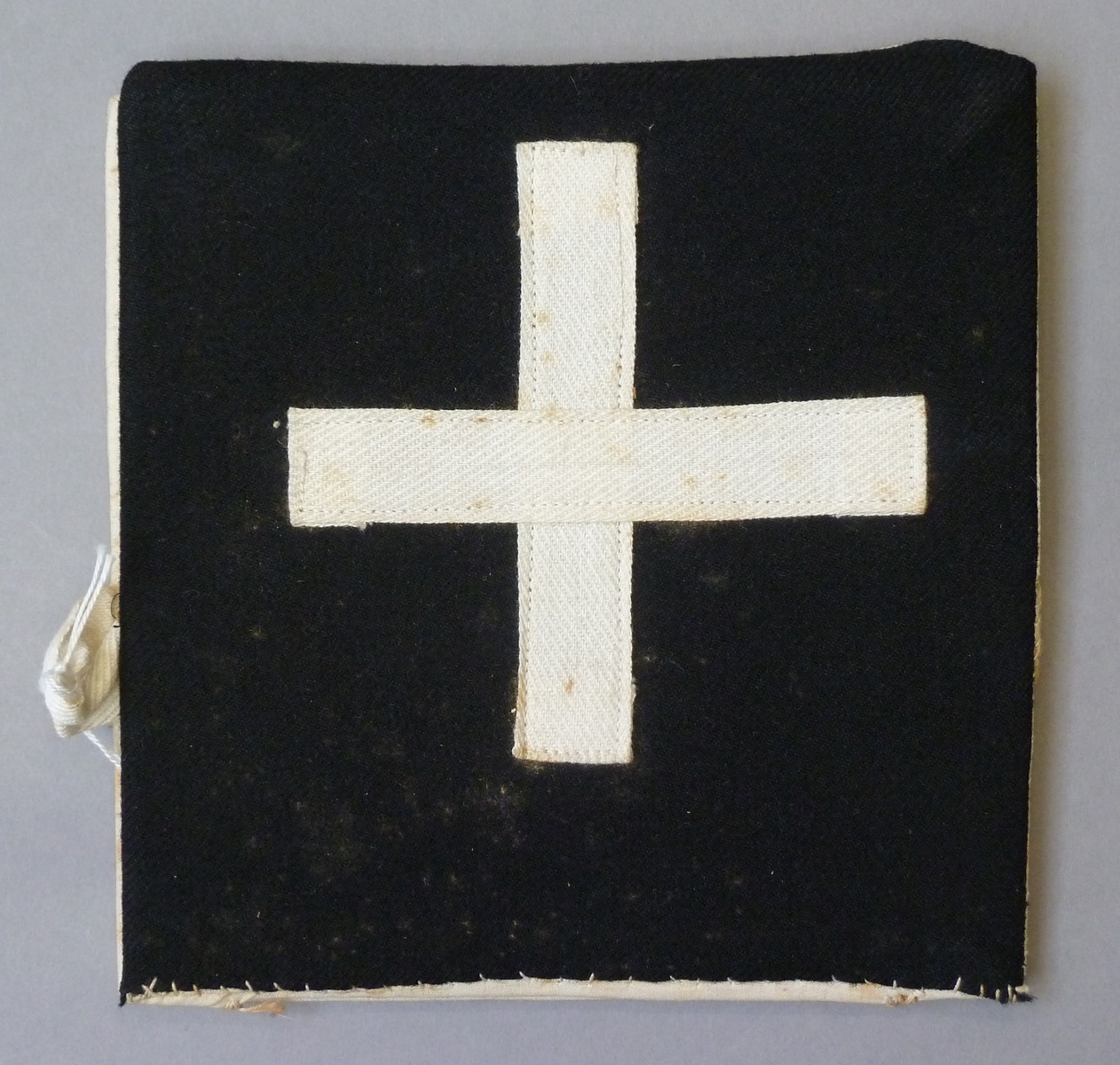 Zwarte speelgoedbeurs met opgenaaid wit kruis