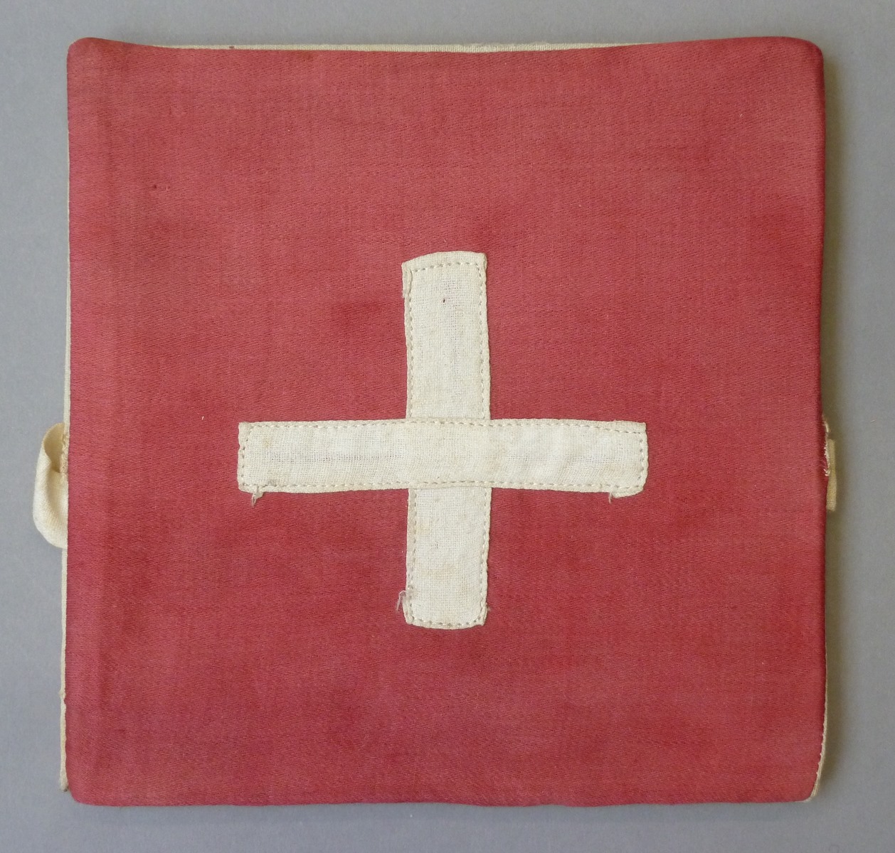 Rode speelgoedbeurs met opgenaaid wit kruis