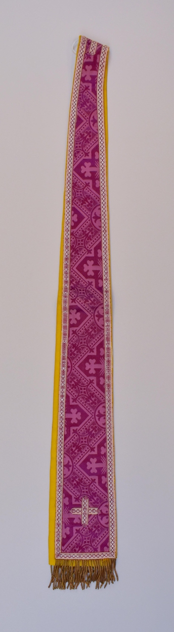 Paarse kinderstola met kruismotieven en franje