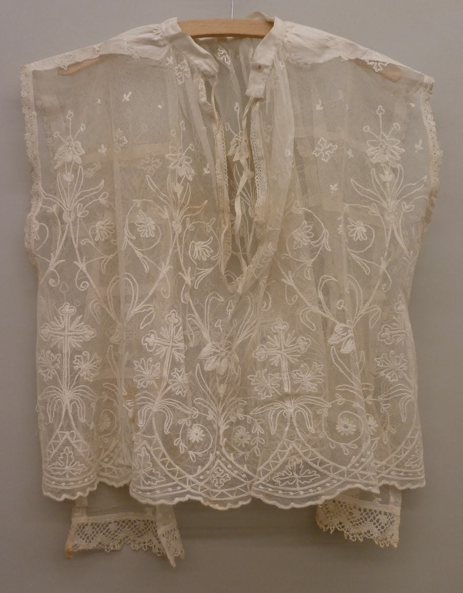 Witte tule kinderrochet geborduurd met bloemmotieven