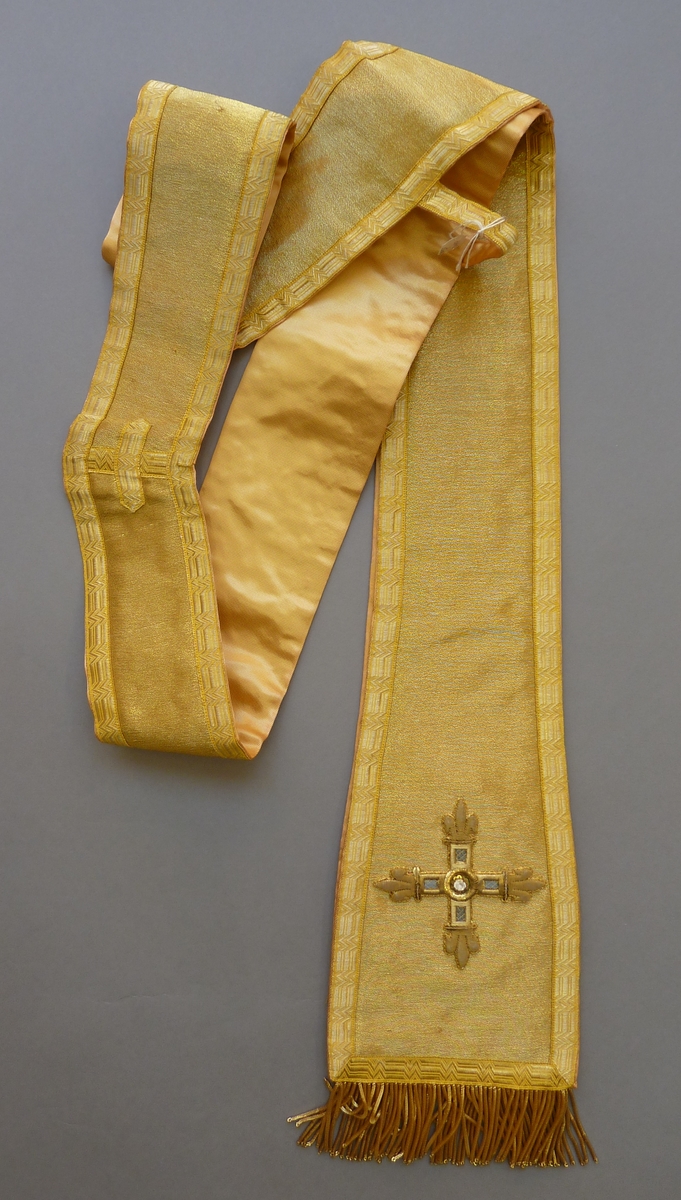 Goudkleurige preekstola met tussenstukje en twee geappliceerde kruisen