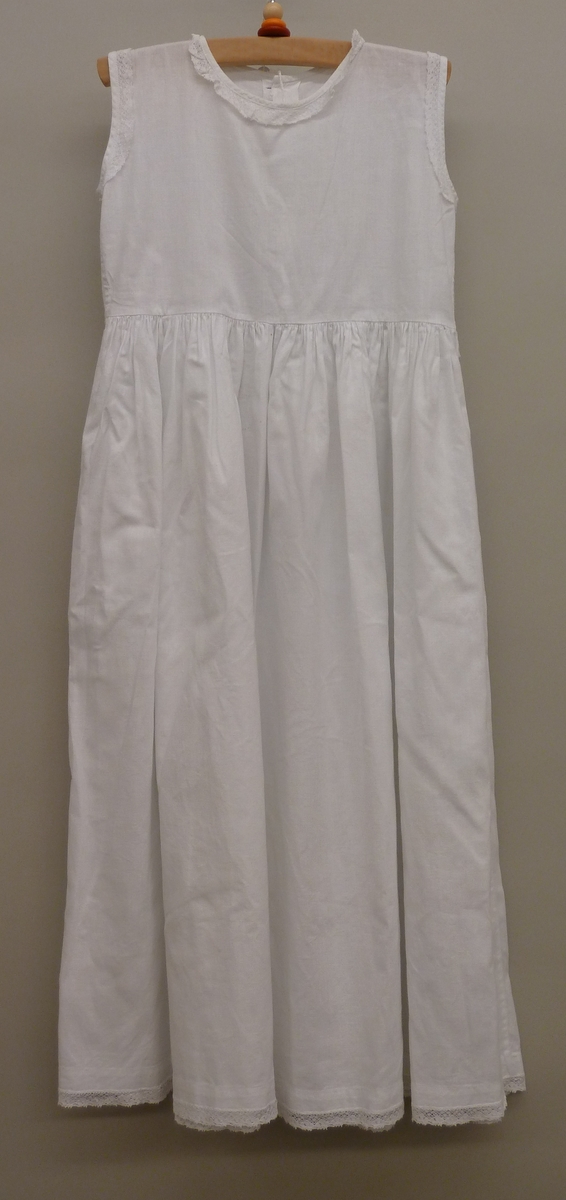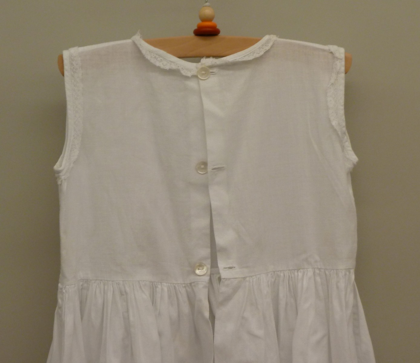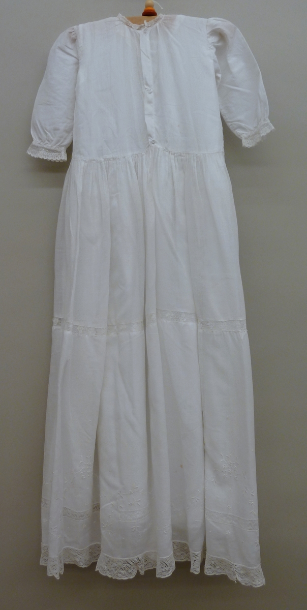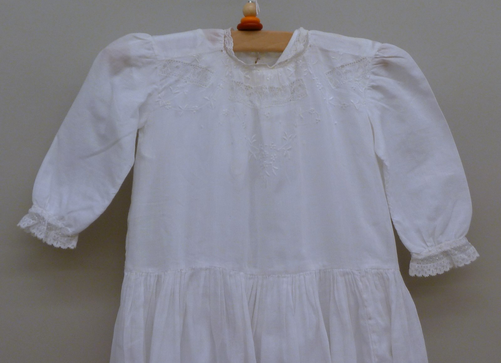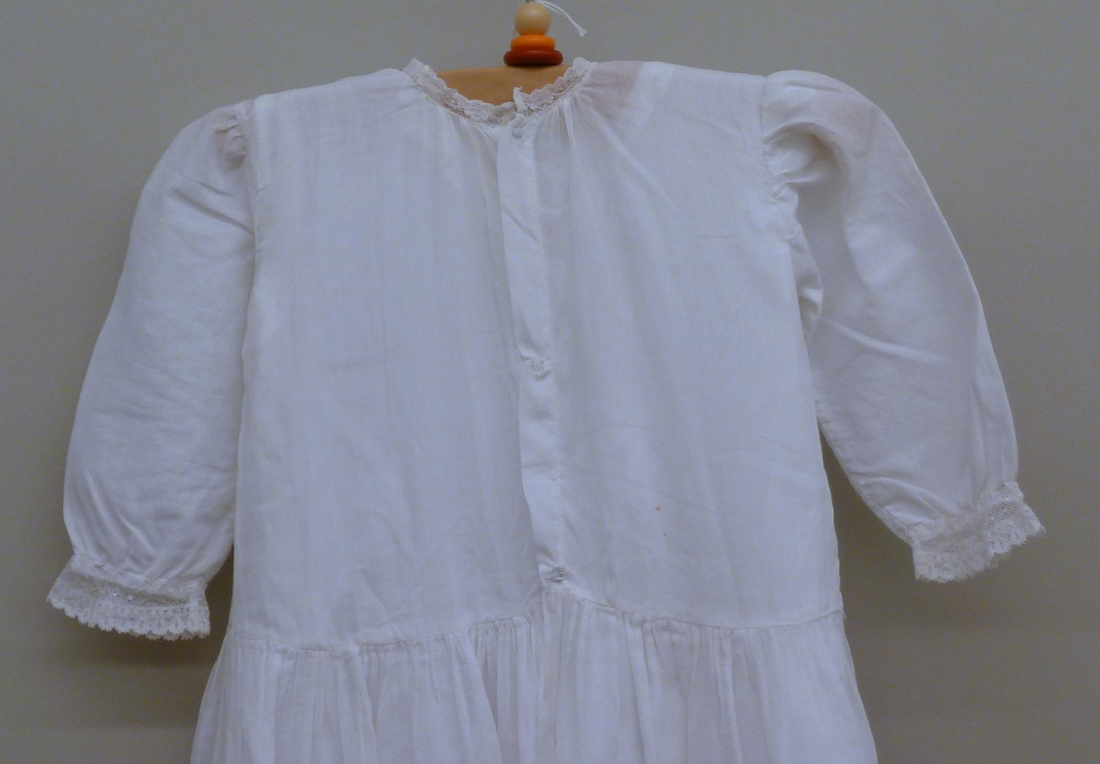 Doopjurk met onderjurk, met kantrandjes en geborduurde bloemranken