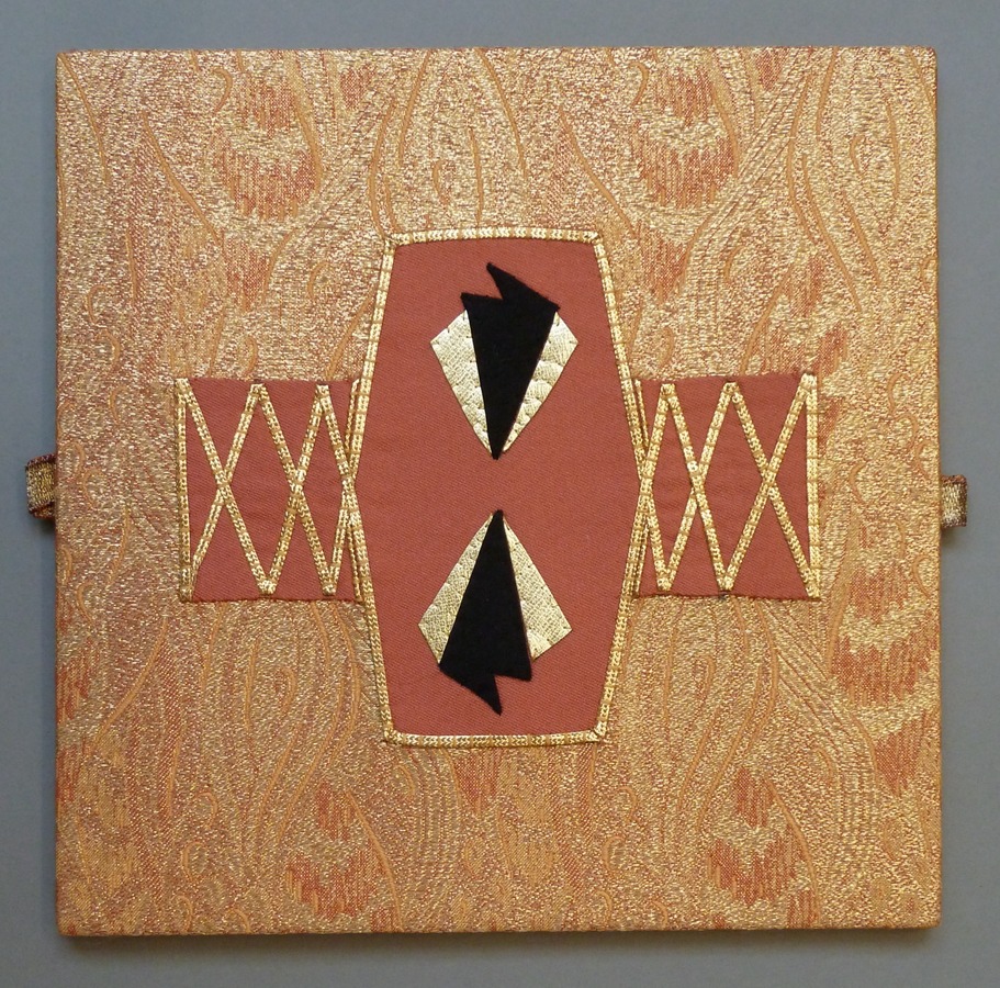 Goudkleurige beurs met geappliceerd kruis