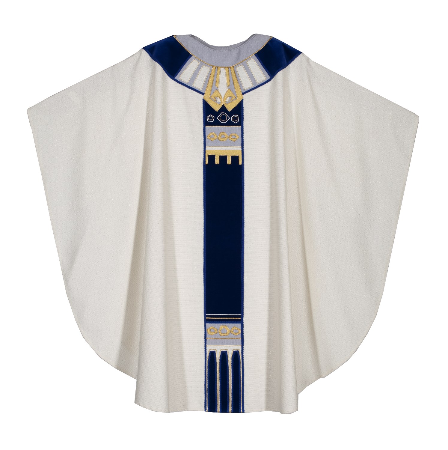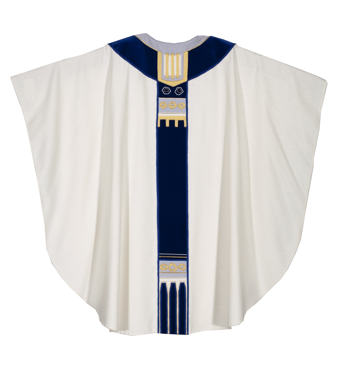 Wit kazuifel met blauw gaffelkruis