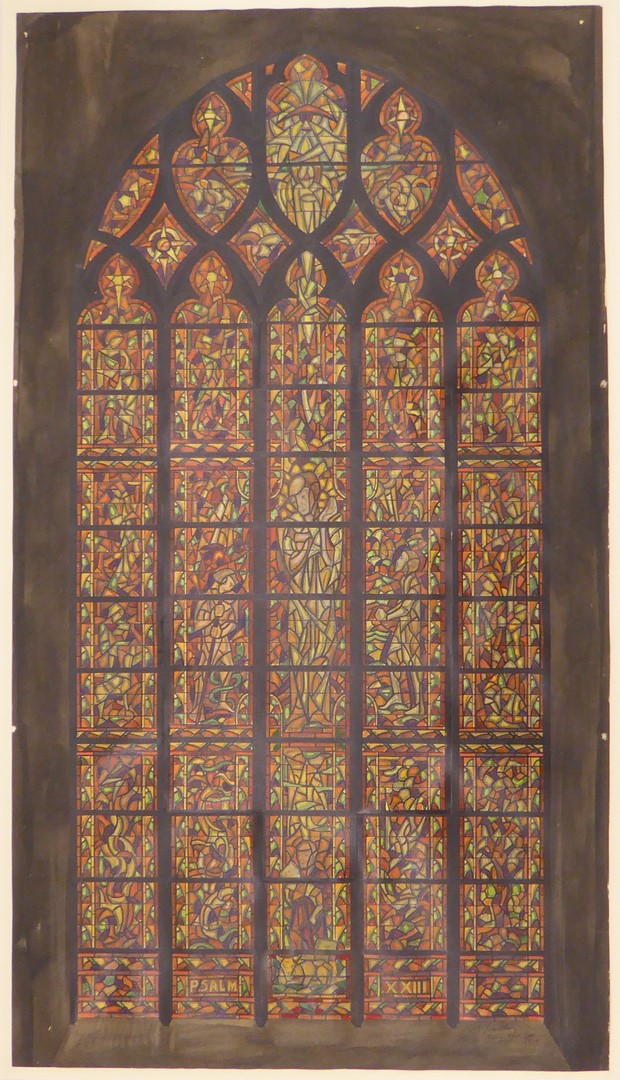 Ontwerptekening glas-in-loodraam Grote Kerk te Goes met "Psalm XXIII", Goede Herder enz.