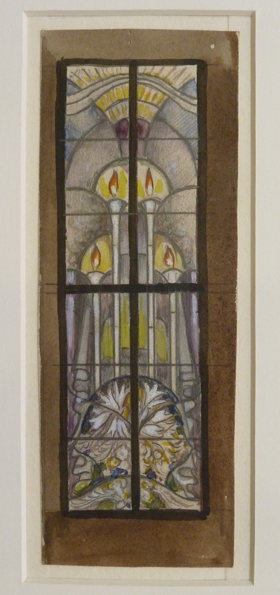 Ontwerptekening glas-in-loodraam met vier kaarsen