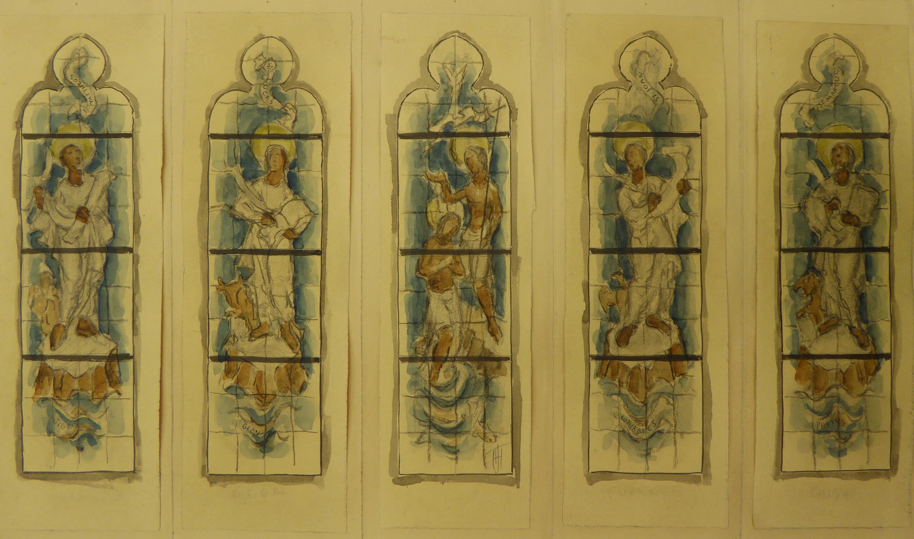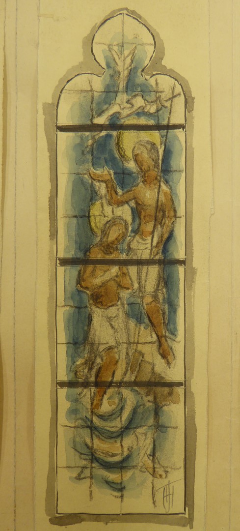 Ontwerp glasraam met doop van Christus in de Jordaan
