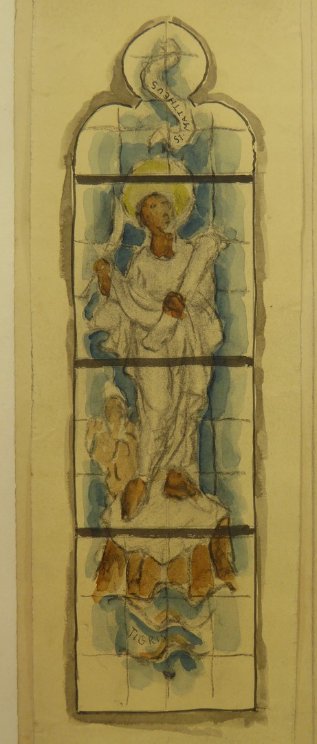 Ontwerp glasraam met evangelist Mattheus