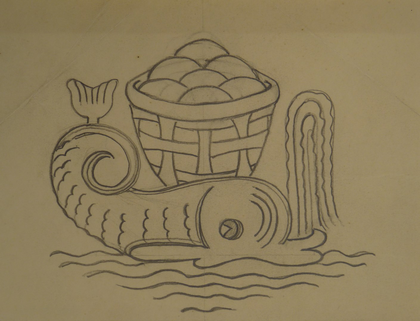 Ontwerp conopeum(?), detail met vis en mand met broden