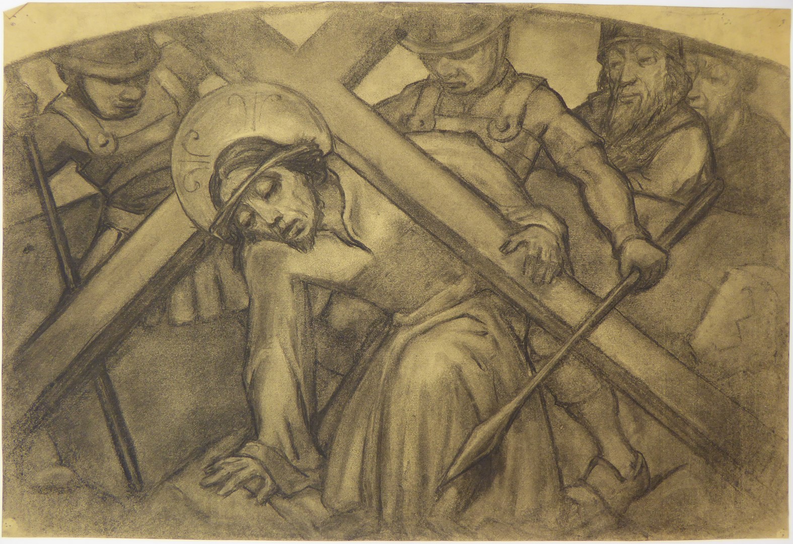 Voorstudie kruiswegstatie met de eerste val van Jezus onder het kruis