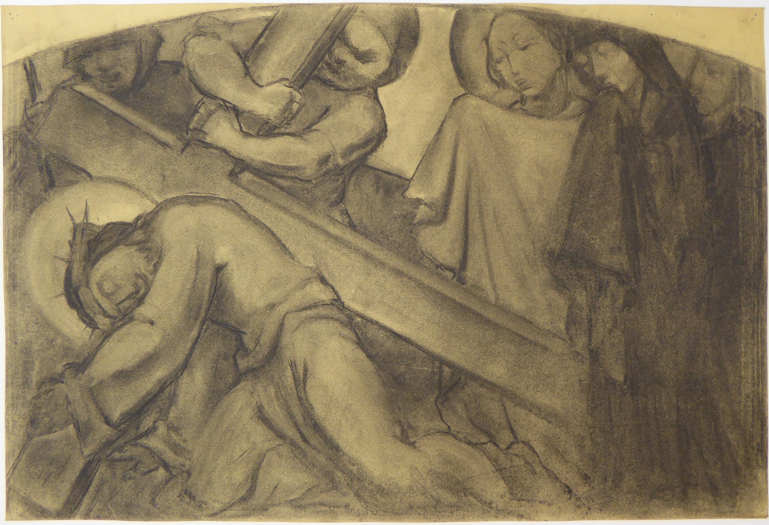 Voorstudie kruiswegstatie met de tweede val van Jezus onder het kruis