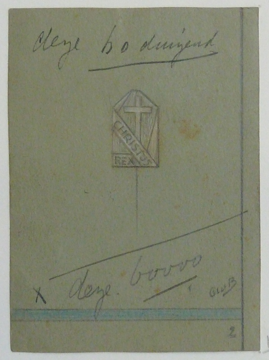 Ontwerp Christus Koning speldje met "Christus Rex" en kruis, staand zeshoekig model