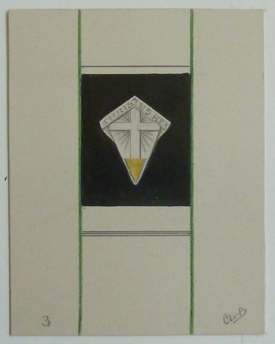 Ontwerp Christus Koning speldje met "Christus Rex" en kruis in stralen