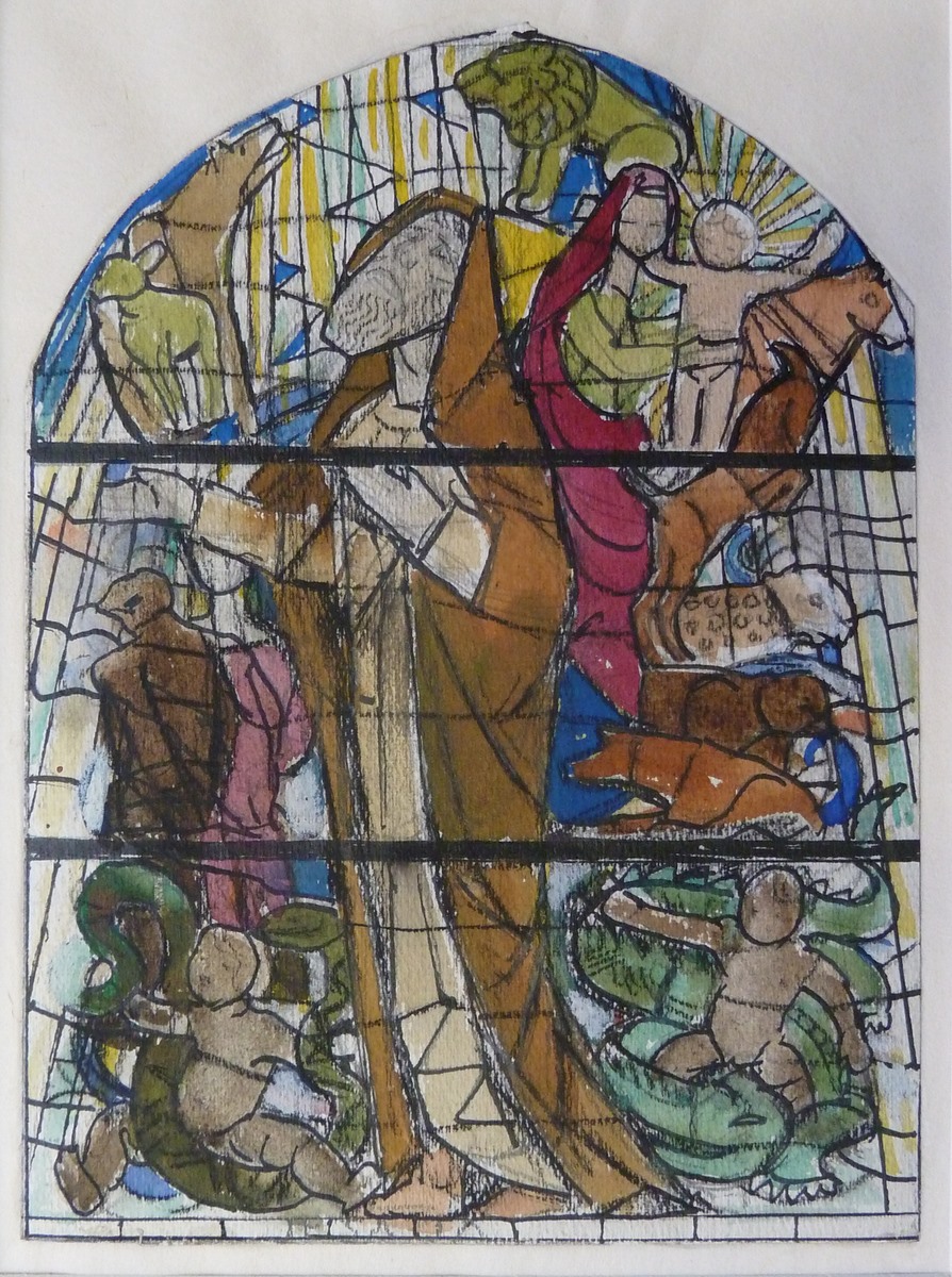 Ontwerp glas-in-loodraam met de profeet Jesaja, met tekststrookje
