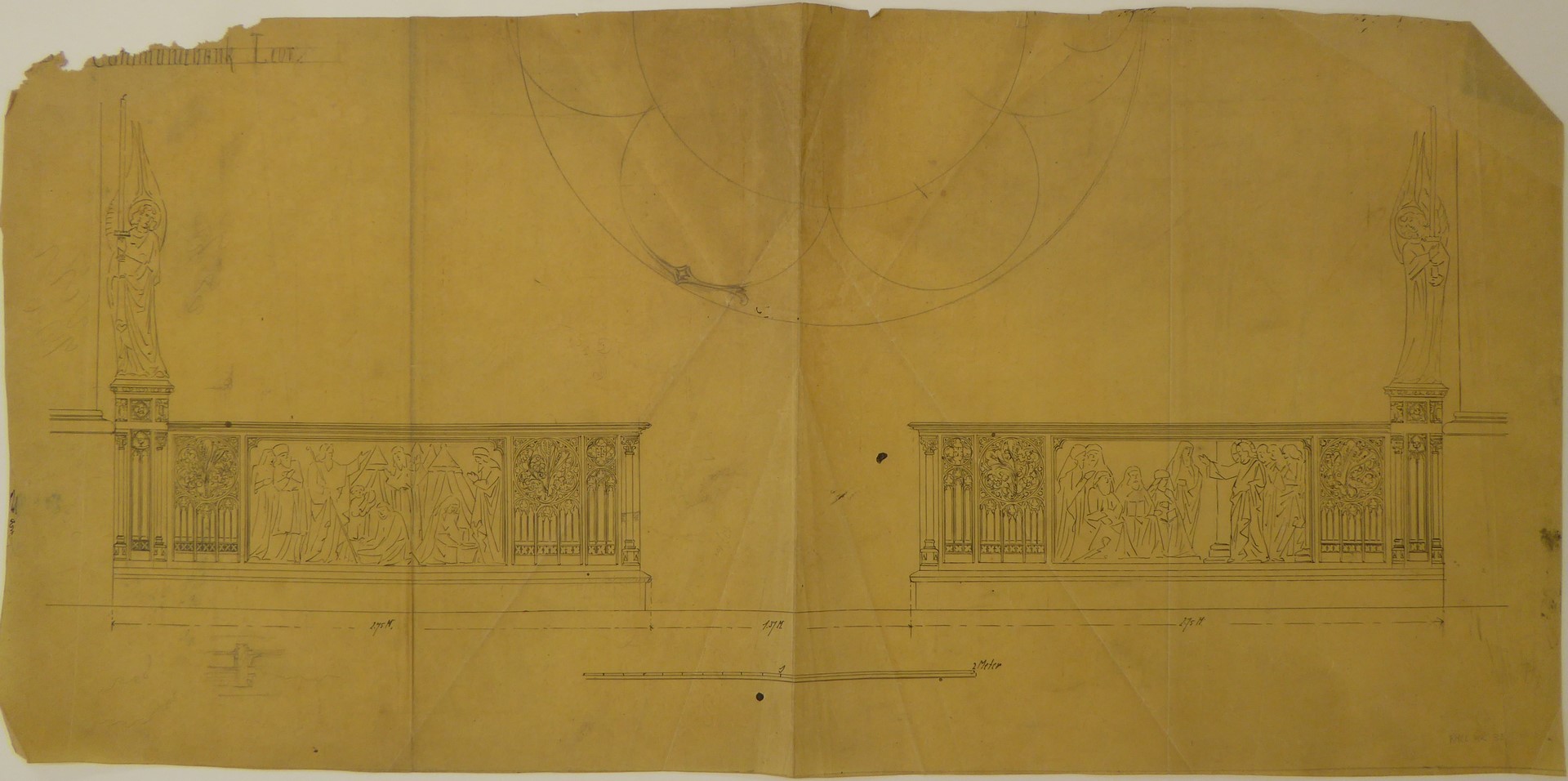 Voorzijde communiebank (Leur) en onvolledige schets raam