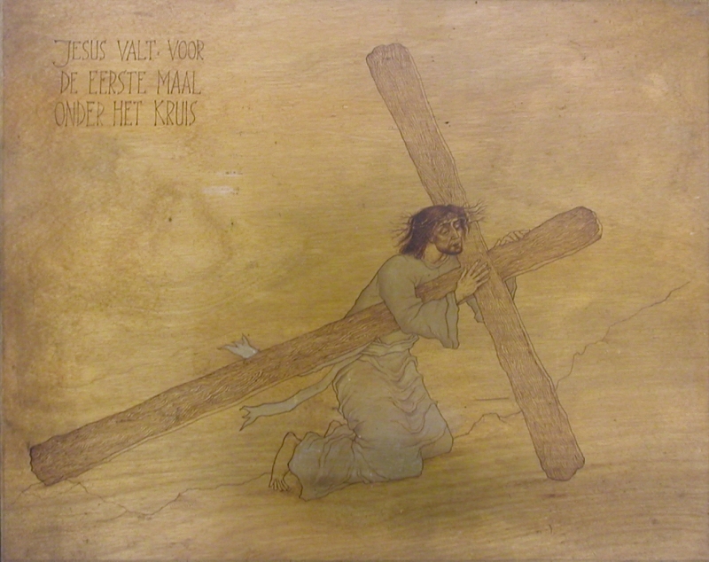 Derde kruiswegstatie: Jezus valt voor de eerste maal onder het kruis
