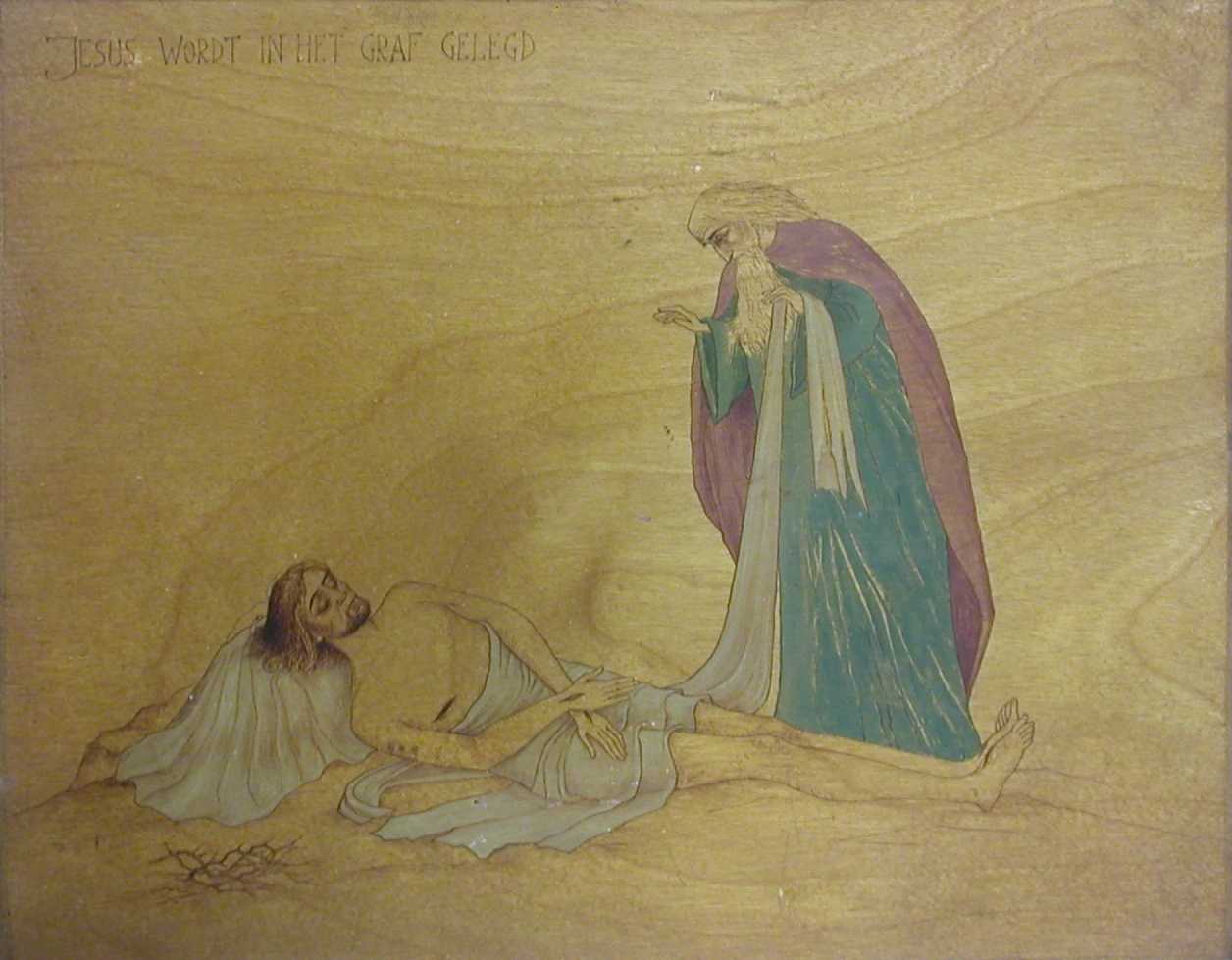 Veertiende kruiswegstatie: Jezus wordt in het graf gelegd