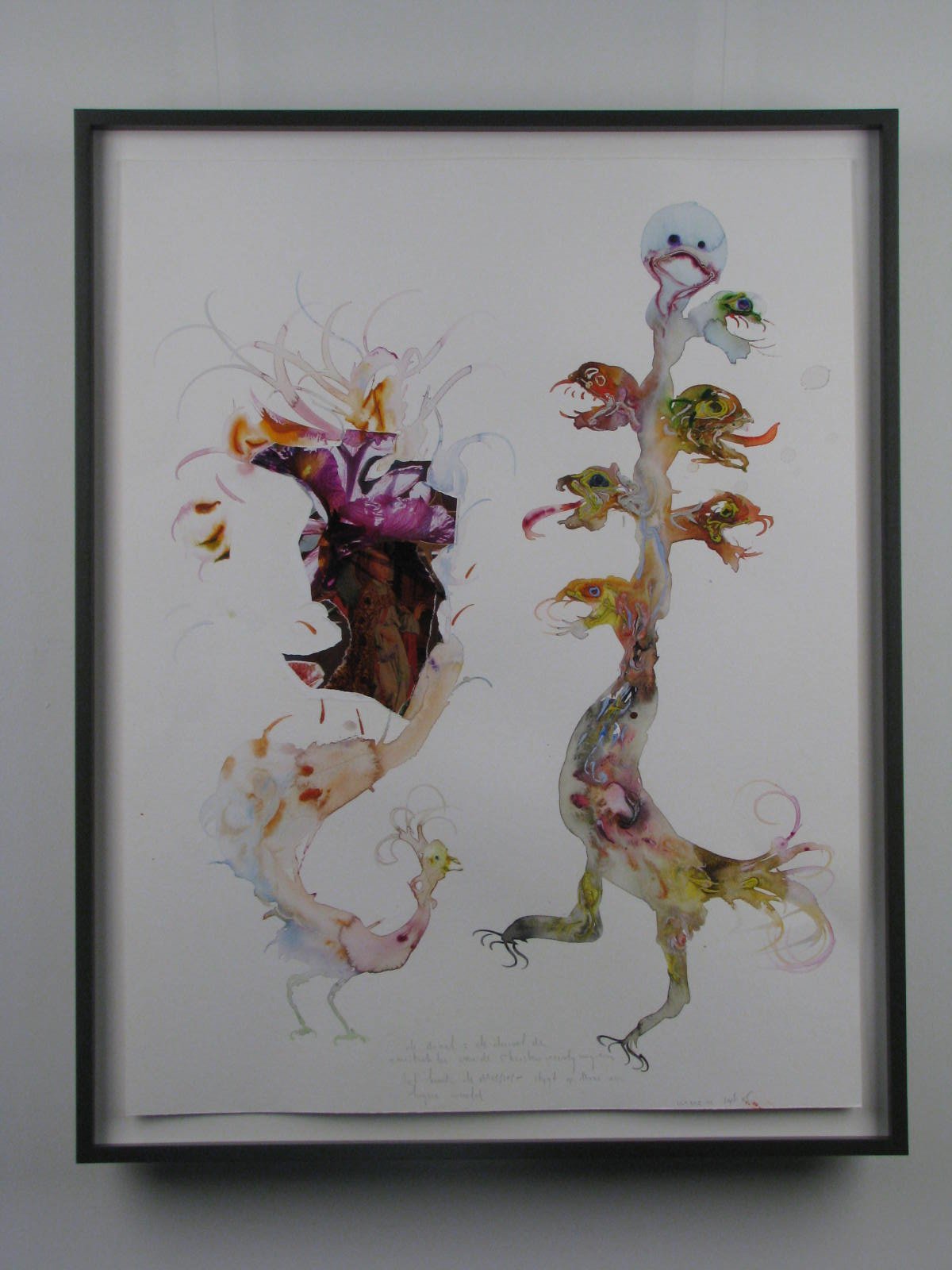 Ontwerptekening voor glas-in-loodraam 'Apocalyps' van Marc Mulders: zevenkoppige draak met in potlood "de draak = de duivel de aanstichter van de Christenvervolgingen het kind - de Messias - stijgt op naar een hogere wereld"