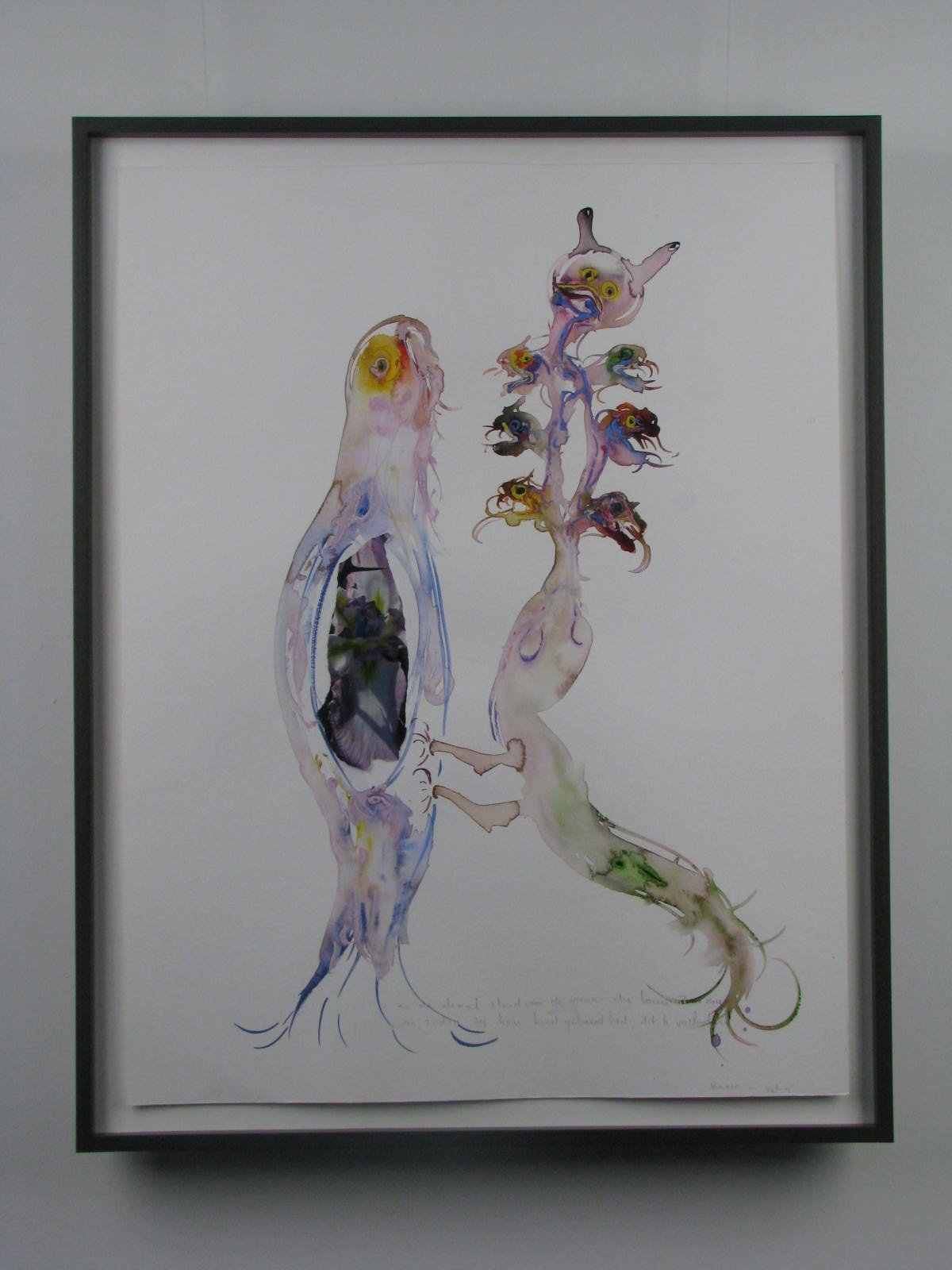 Ontwerptekening voor glas-in-loodraam 'Apocalyps' van Marc Mulders: zevenkoppige draak met in potlood "en de draak stond voor de vrouw die baren (zou) zou om, zodra zij haar kind gebaard had, dit te verslinden"