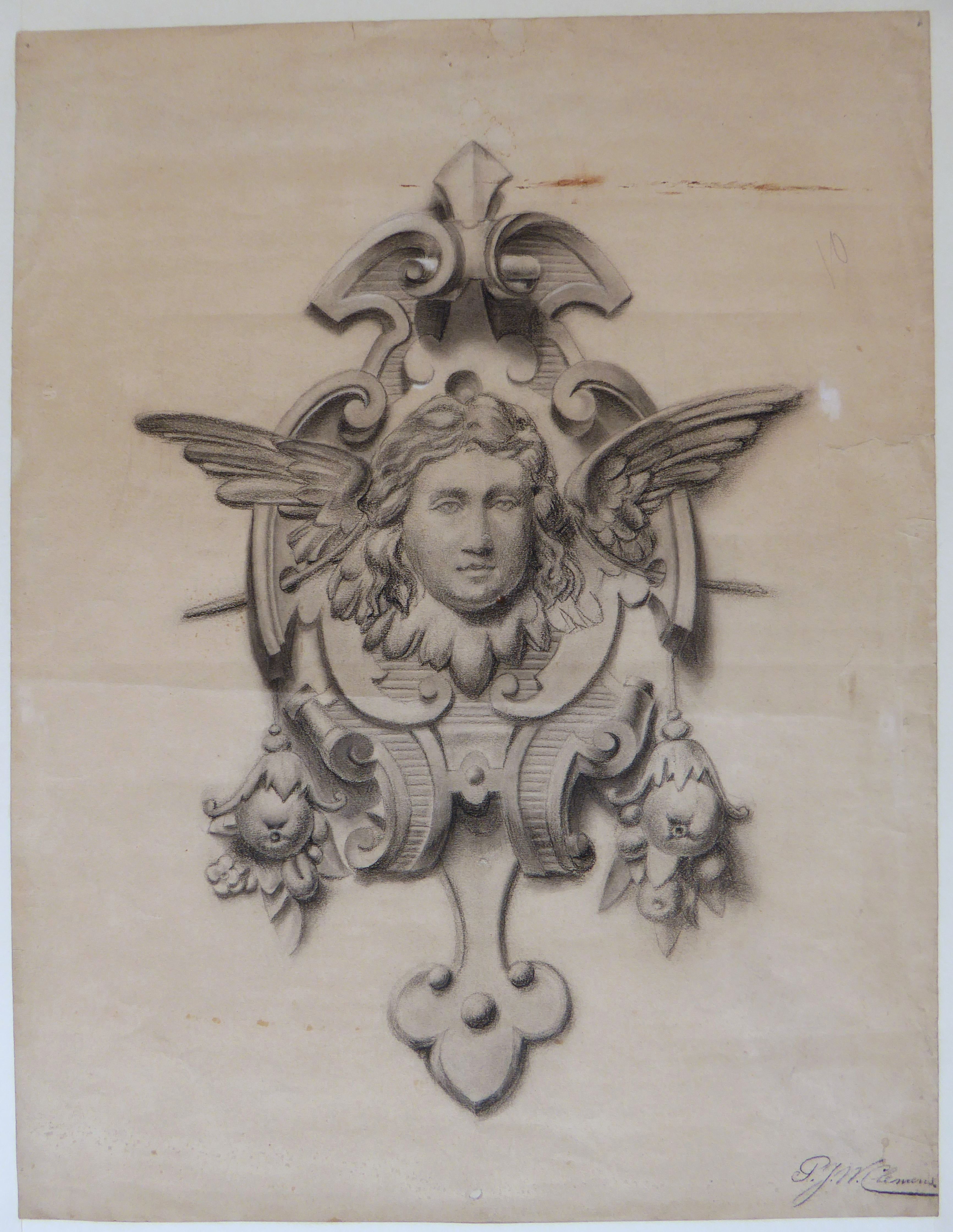 Symmetrisch ornament met in het midden een engel