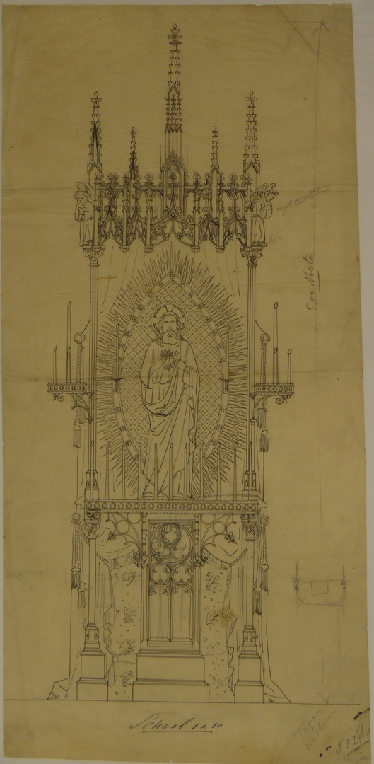 Ombouw en voetstuk in neogotische stijl voor H. Hart-beeld