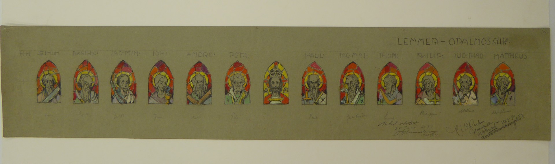 Ontwerp dertien opalinemozaieken met Christus en de apostelen (Lemmer, St. Willibrorduskerk)