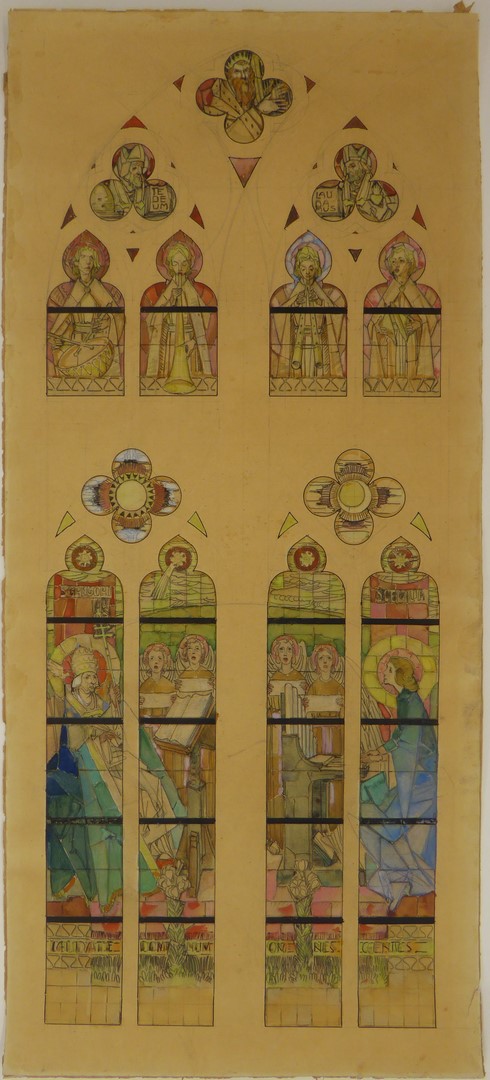 Ontwerp glasraam met Gregorius, Cecilia en David (Lonneker)