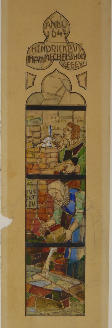 Ontwerp glasraam met Anno 1642 Hendrich bus. Man Mechelscholt gegev. (Lonneker)