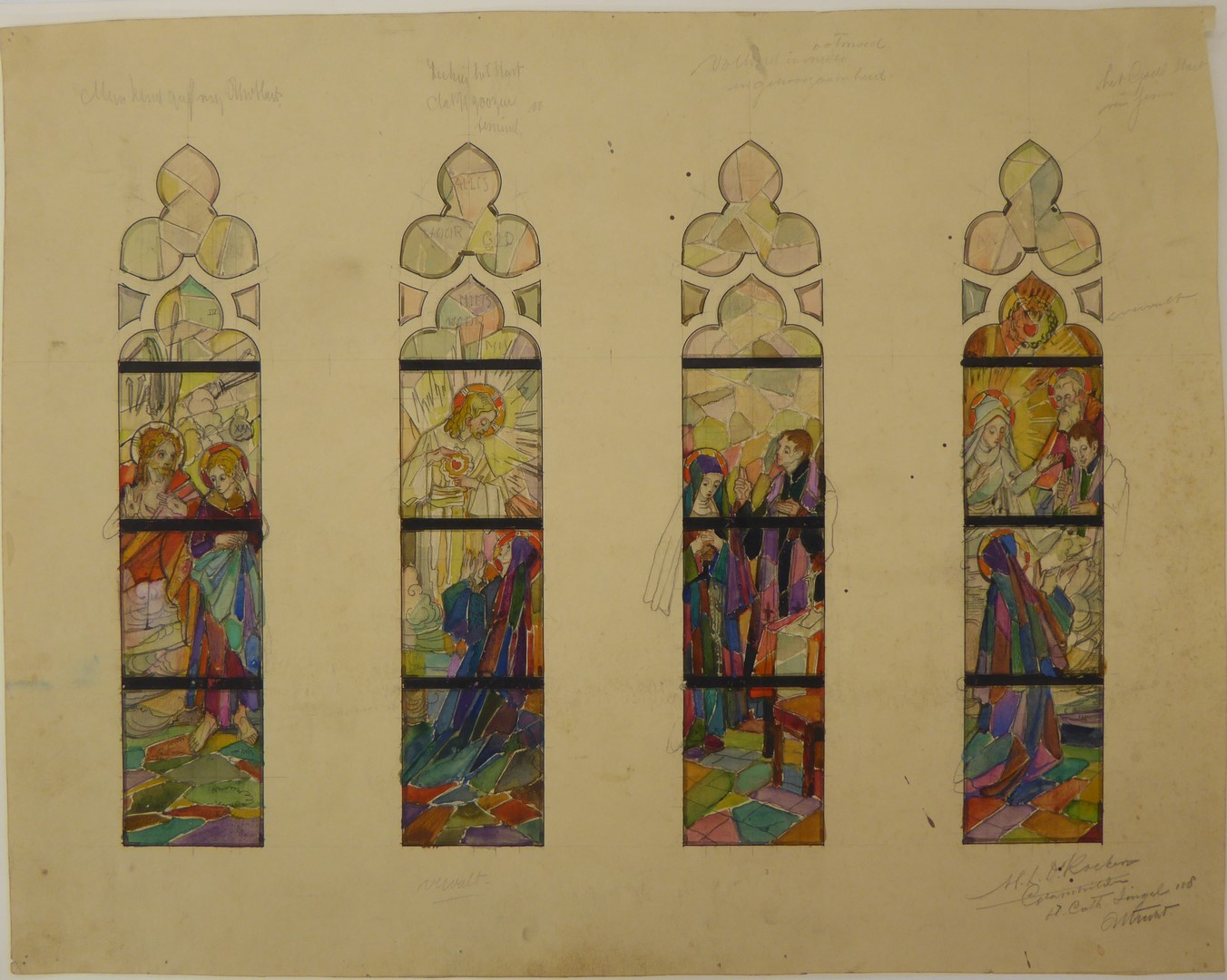 Ontwerp vier ramen met scènes uit het leven van Margaretha Maria Alacoque (Lonneker)