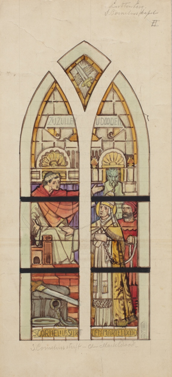 Ontwerp glasraam met de marteldood van paus Cornelius (Luttenberg, St. Corneliuskerk)