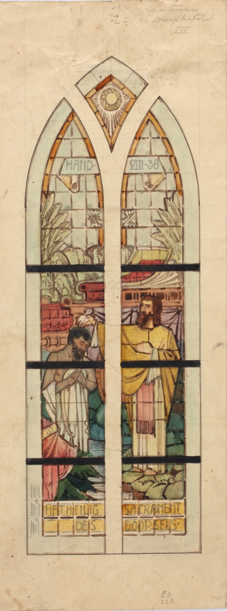 Ontwerp glasraam met de doop van de kamerling (Luttenberg, St. Corneliuskerk)