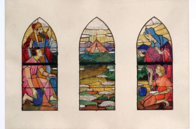 Ontwerp drie glasramen met de tent en de ark des verbonds (Maarn, St. Theresiakerk)