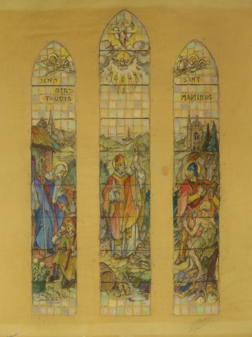Ontwerp drie glasramen met Gertrudis, Willibrord en Martinus (Utrecht, St. Gertrudiskerk)