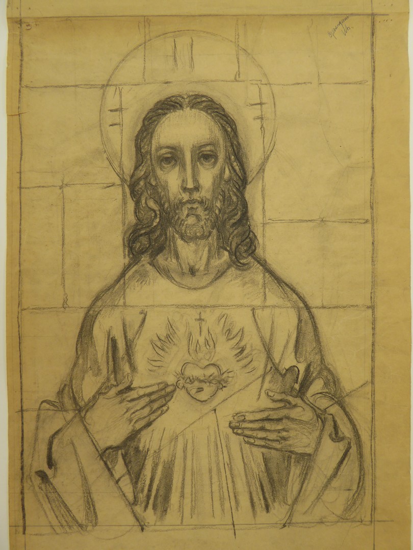 Ontwerp glasraam met H. Hart (Utrecht, huis van bewaring)