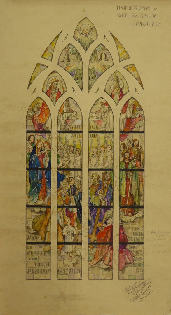 Ontwerp glasraam met de verheerlijking van de Drie-eenheid (Utrecht, kapel R.K. kerkhof)