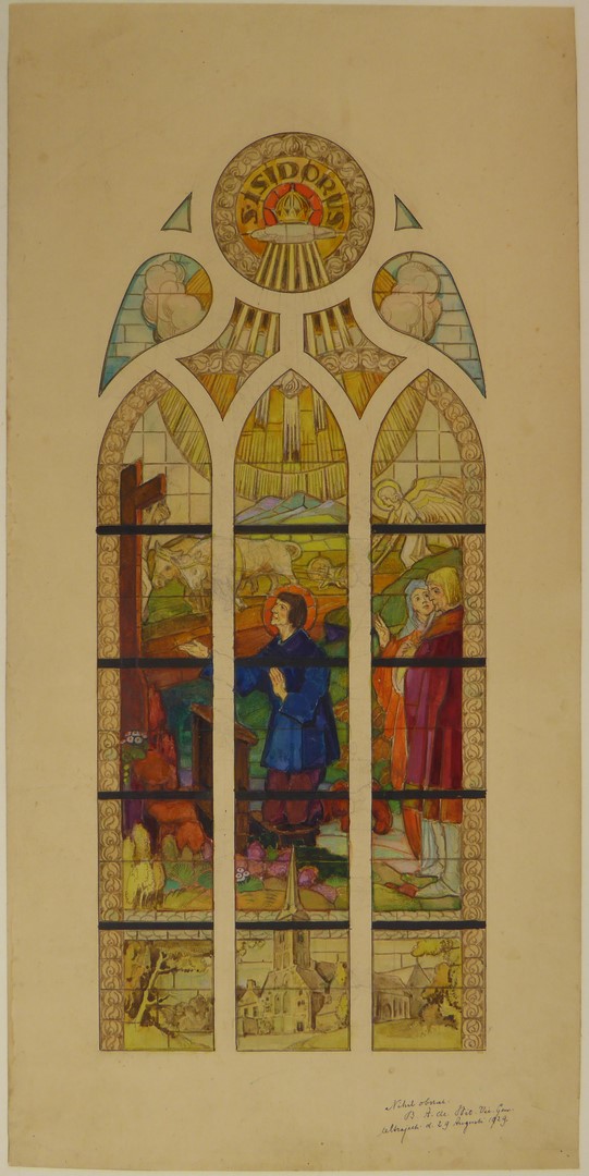 Ontwerp glasraam met St. Isidorus, (Utrecht, St. Martinuskerk)