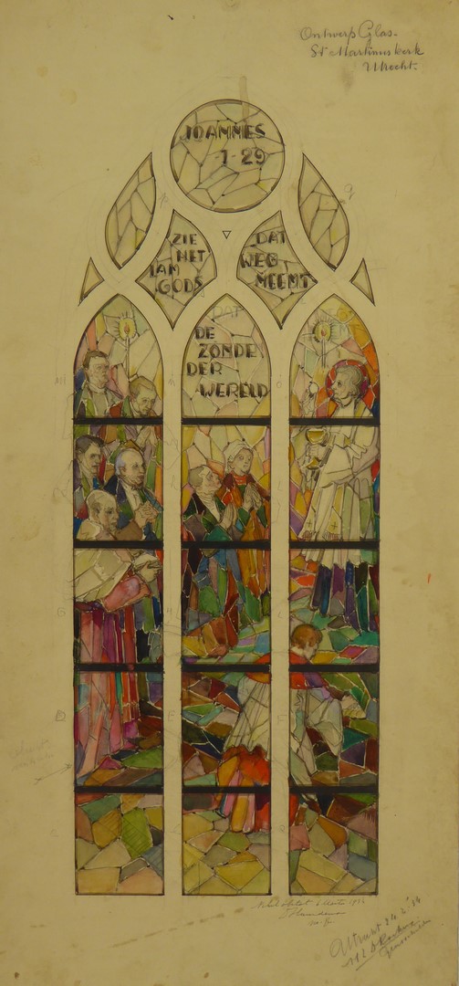 Ontwerp glasraam met het Lam Gods (Utrecht, St. Martinuskerk)
