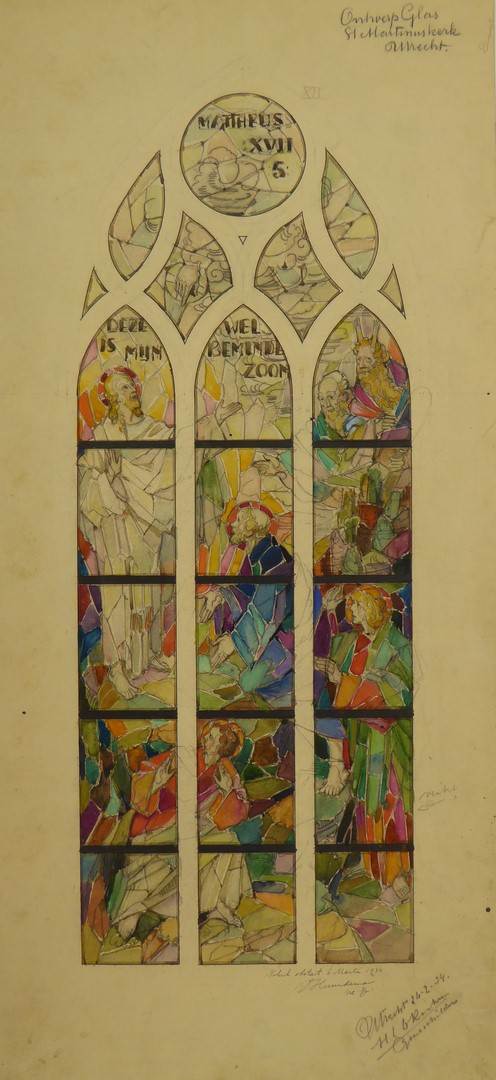 Ontwerp glasraam met deze is mijn welbeminde zoon (Utrecht, St. Martinuskerk)